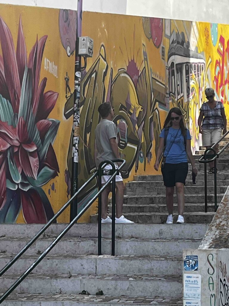 O pár ulic dál už ale Lisabon zase pulzuje – projíždíme se historickou tramvají, která se líně šplhá po kolejích, a z oken sledujeme zdi pokryté barevnými graffiti. Dcera fotí jeden obrázek za druhým a říká: „Tohle mi na Madeiře chybí.“ Je to pravda – a právě proto je kontrast těchto dvou míst tak fascinující.